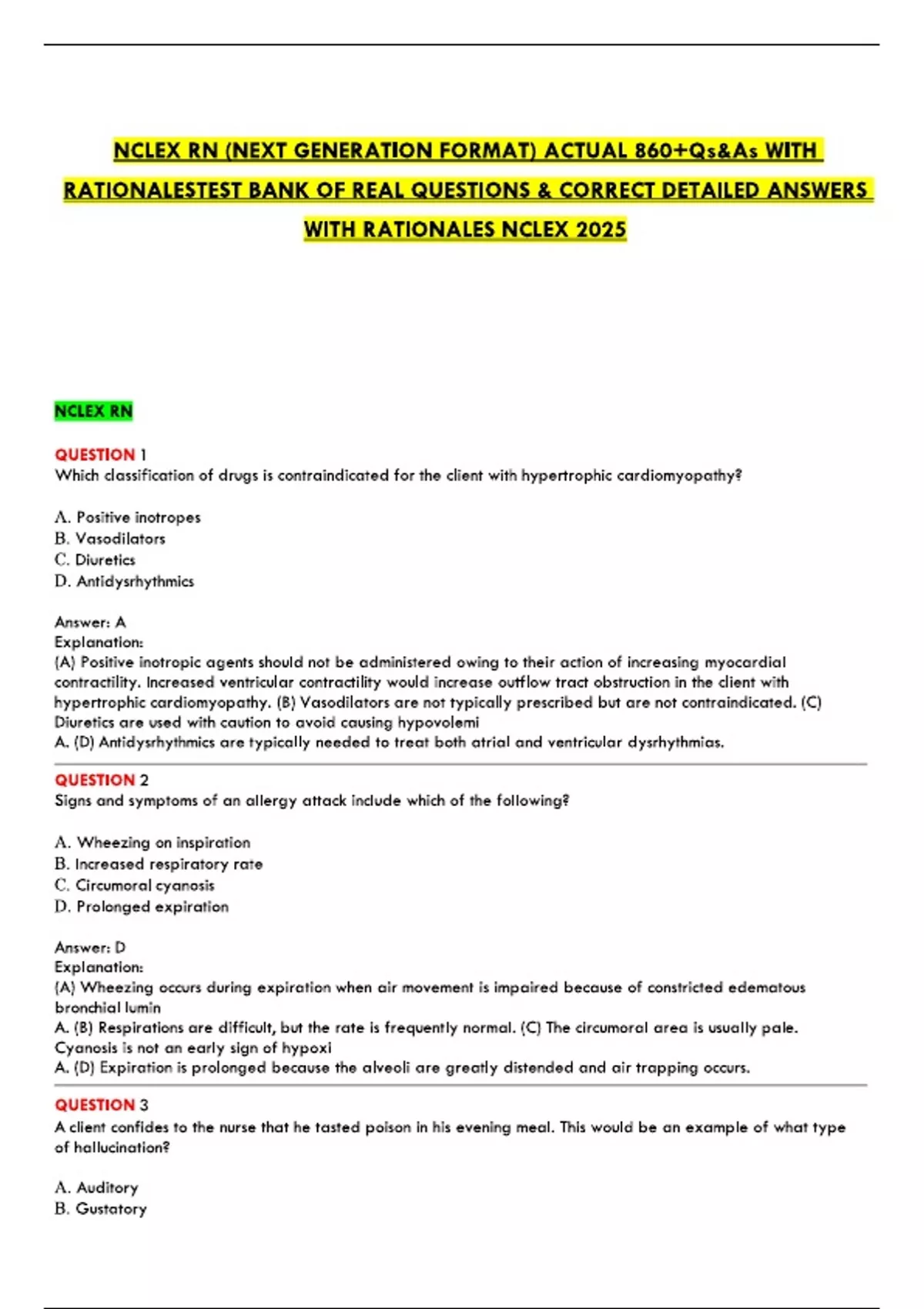 NCLEX RN (NEXT GENERATION FORMAT) ACTUA...ANSWERS WITH RATIONALES NCLEX 2025