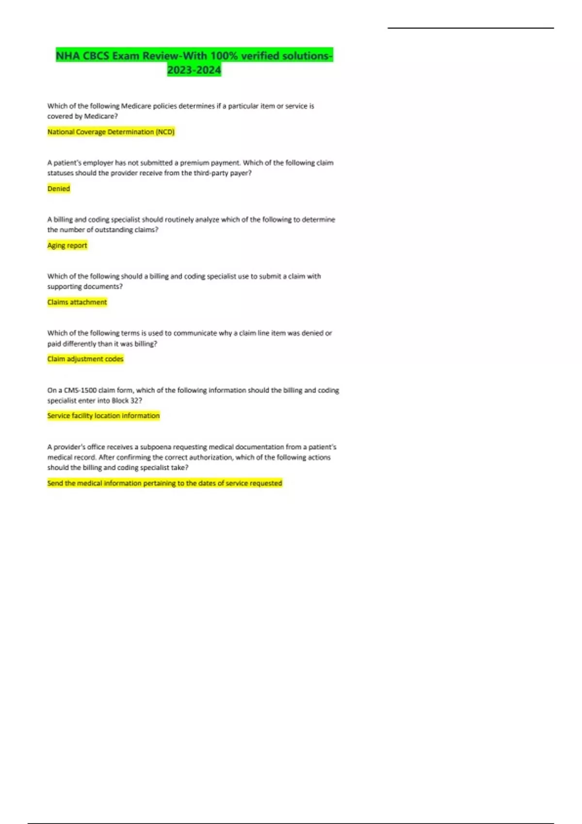 NHA CBCS Exam Review-With 100% verified solutions-