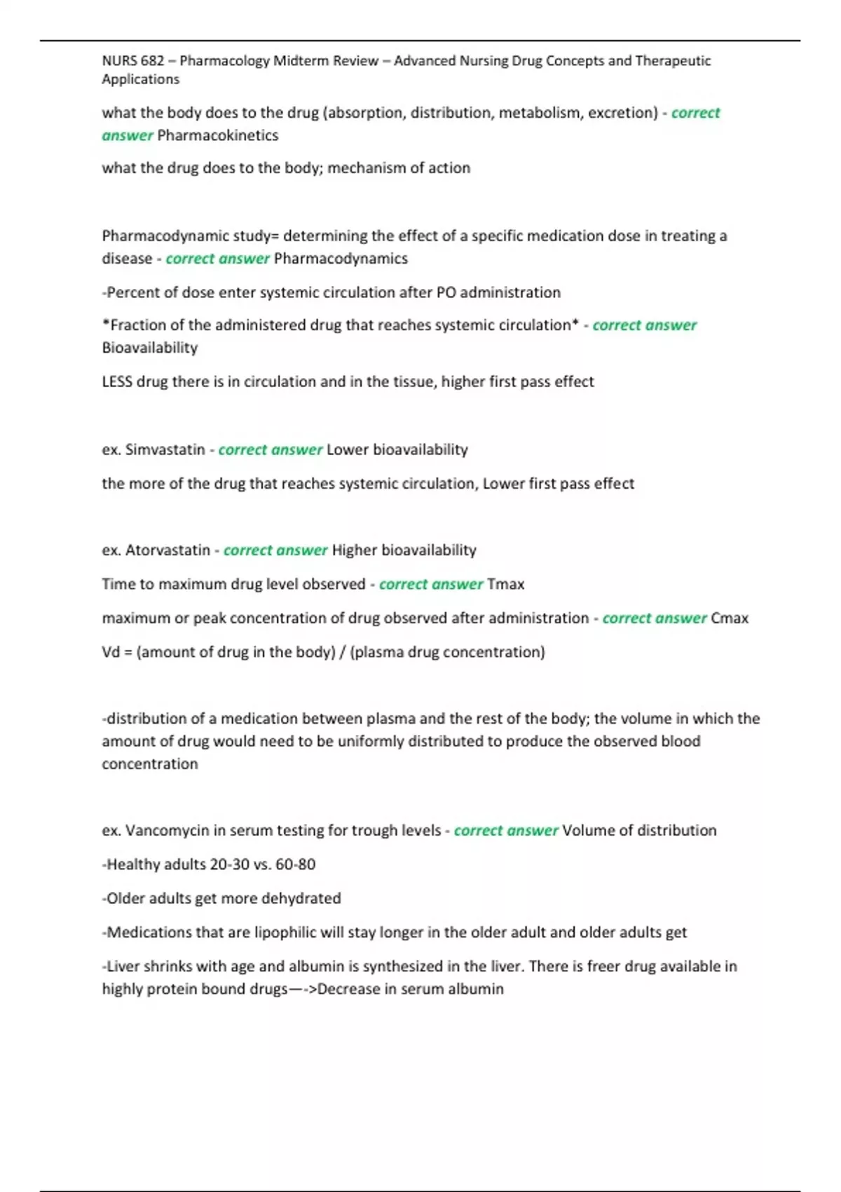 , NURS 682 – Pharmacology Midterm Review – Advanced Nursing Drug Concepts and Therapeutic