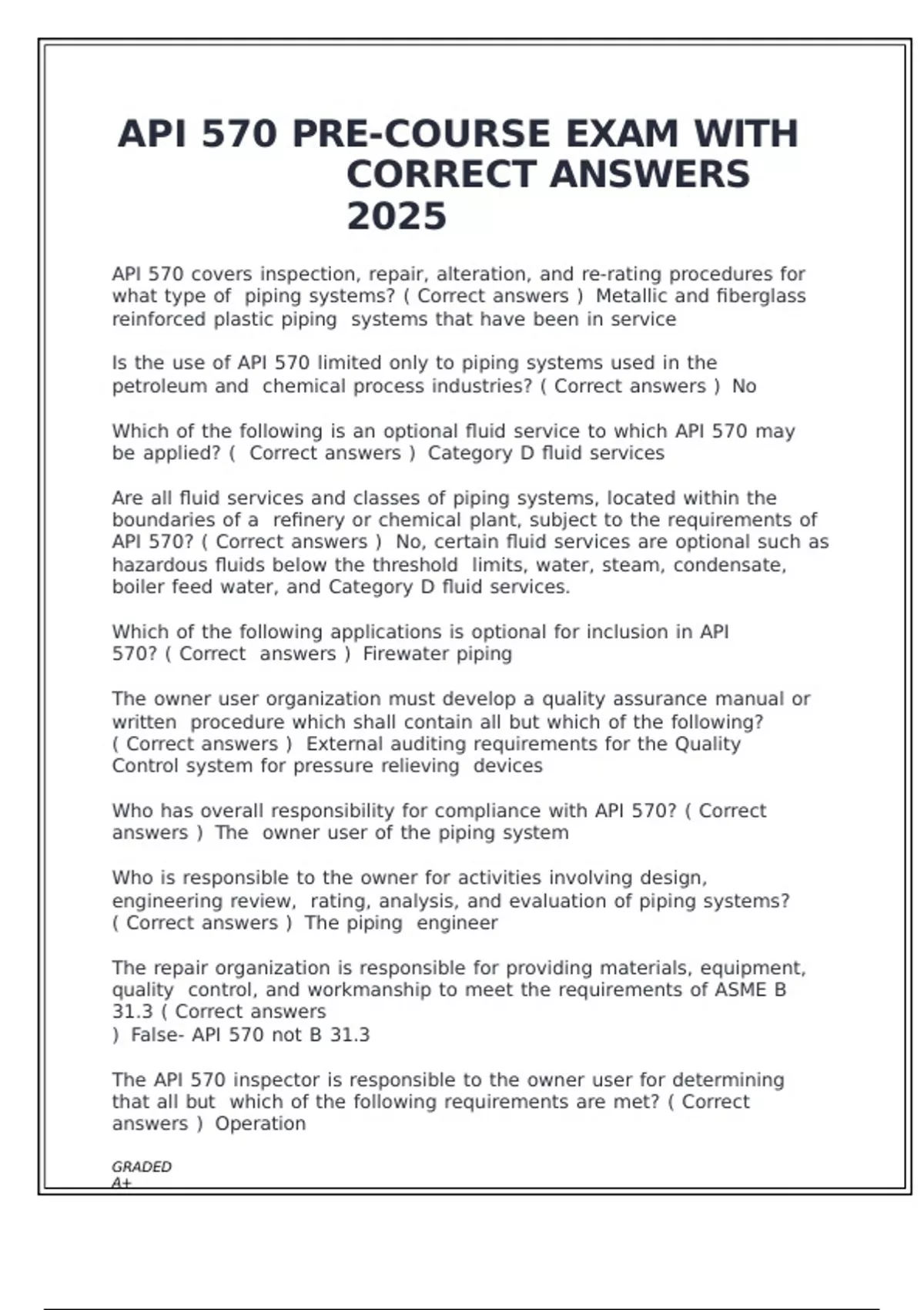 API 570? ( Correct answers ) No, certain fluid services are optional such as