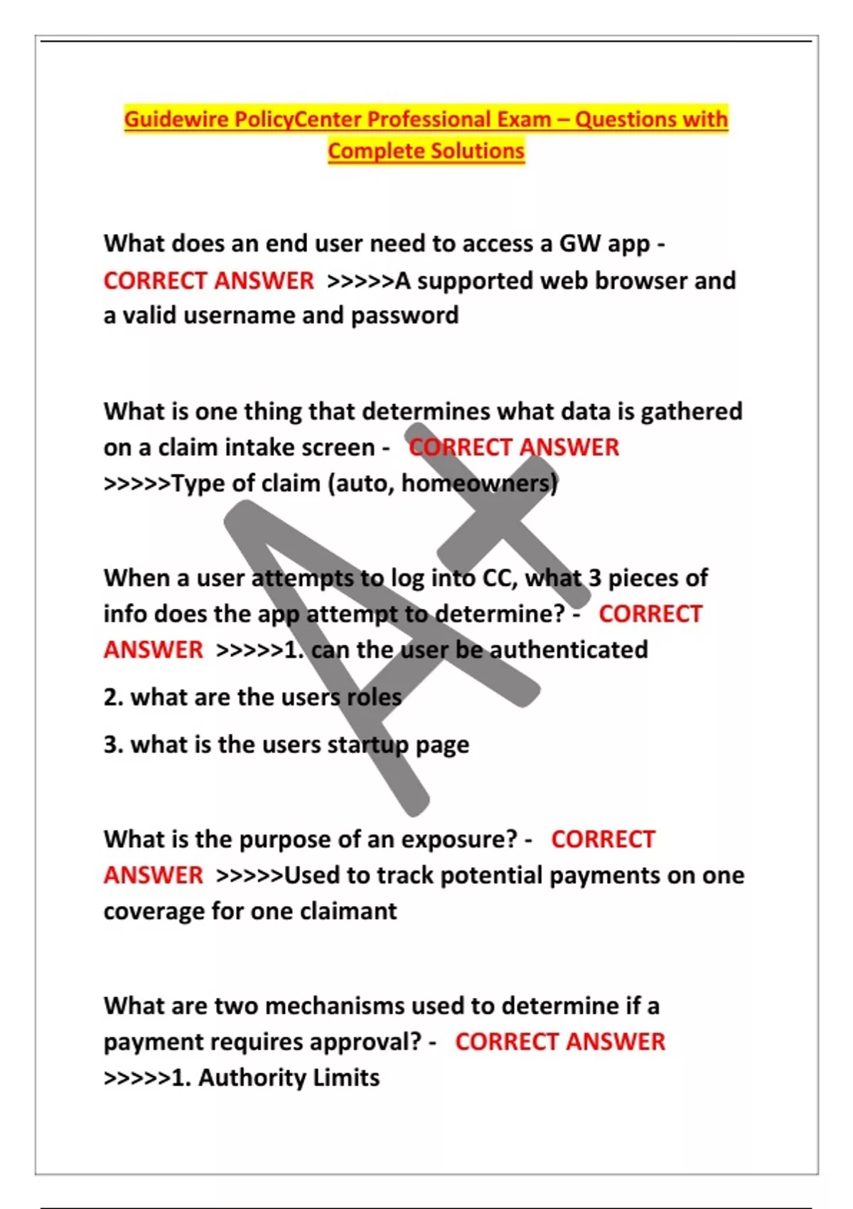 Guidewire PolicyCenter Professional Exam – Questions with