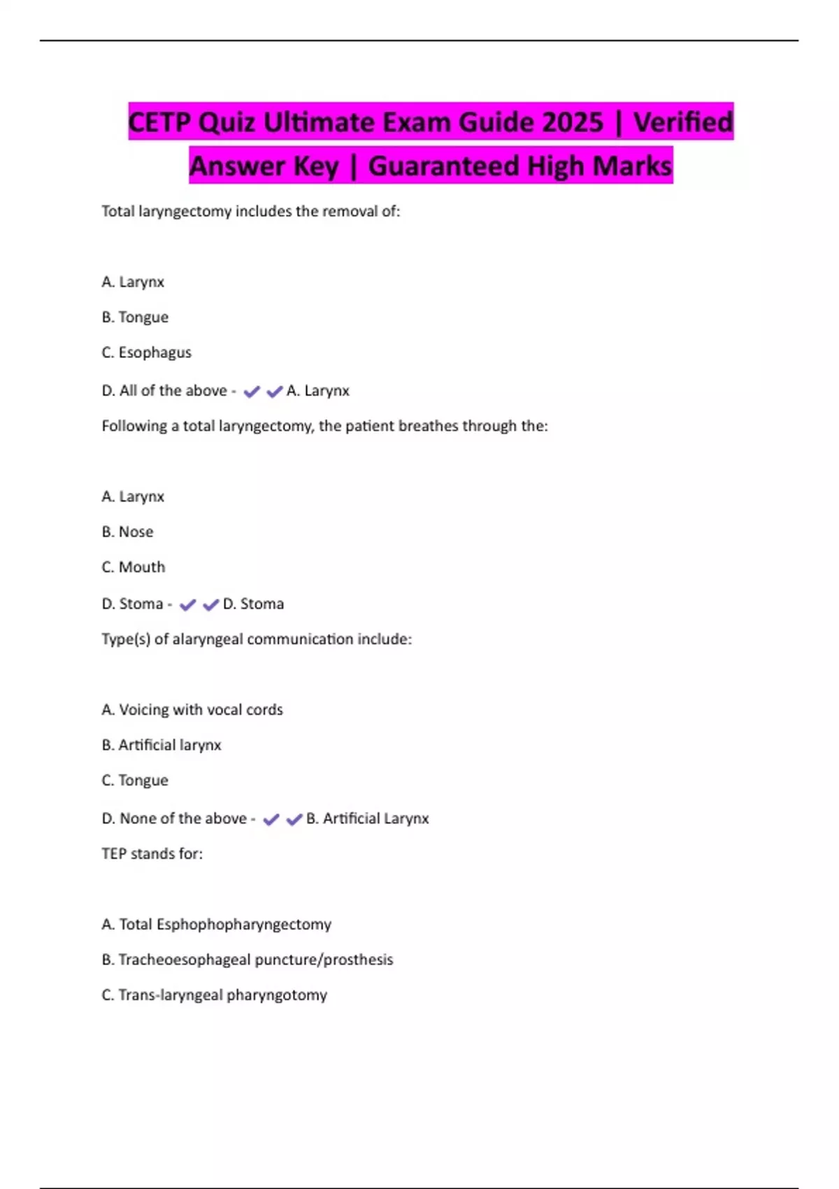 D. None of the above - B. Artificial Larynx