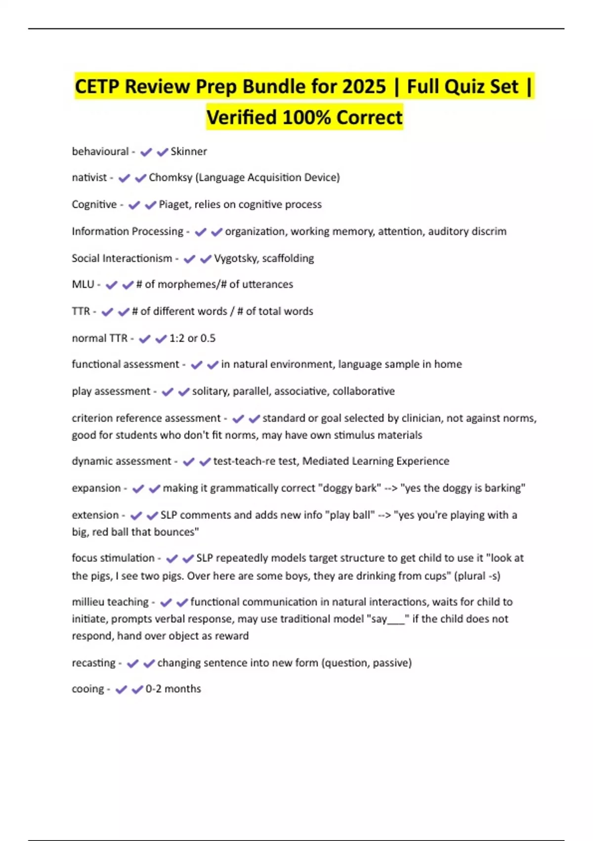 CETP - Child Language Development Exam Preparation Kit 2025/26 | Authentic and Verified Answers