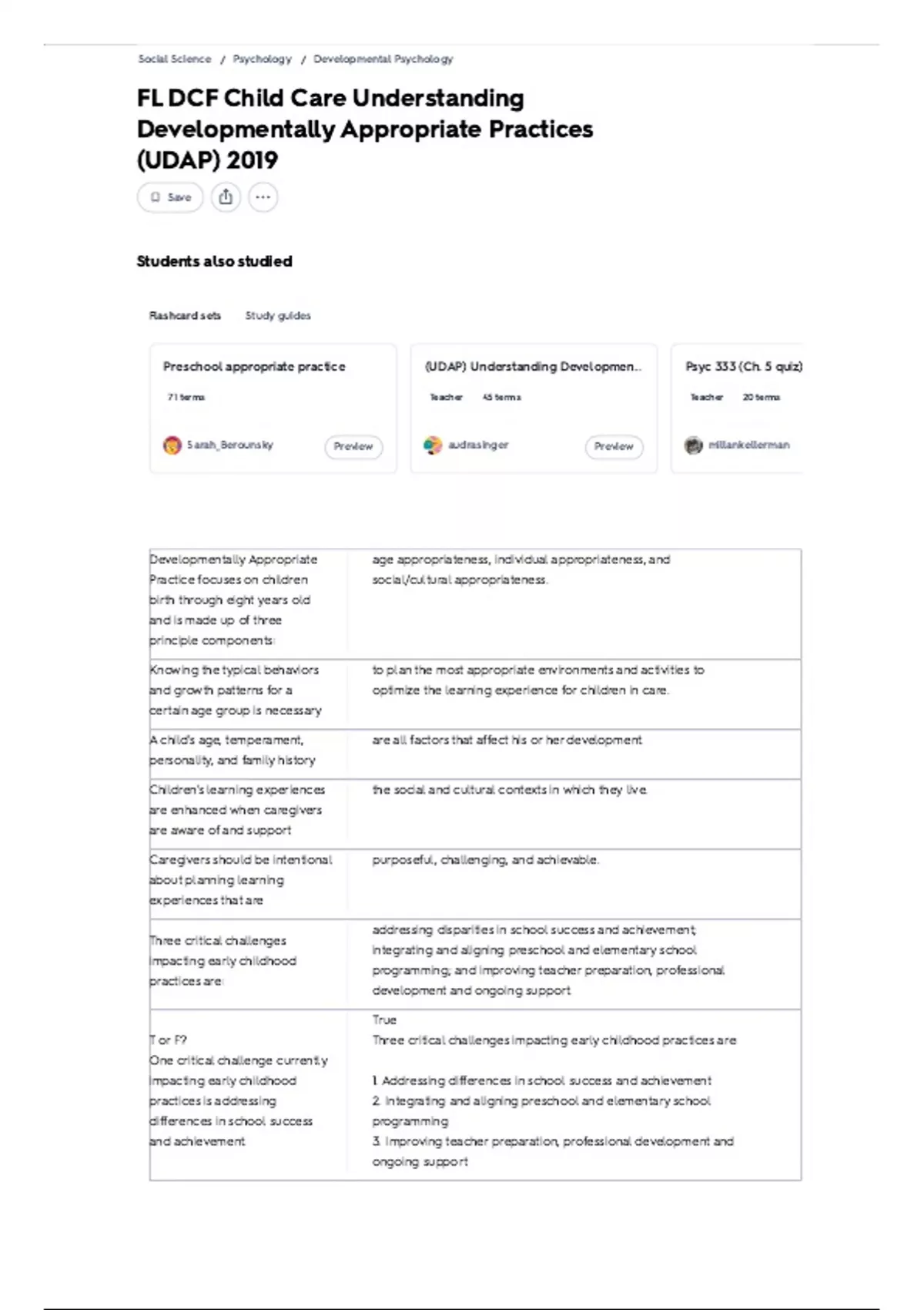 Preschool appropriate practice (UDAP) Understanding Developmen... Psyc 333 (Ch. 5 quiz)