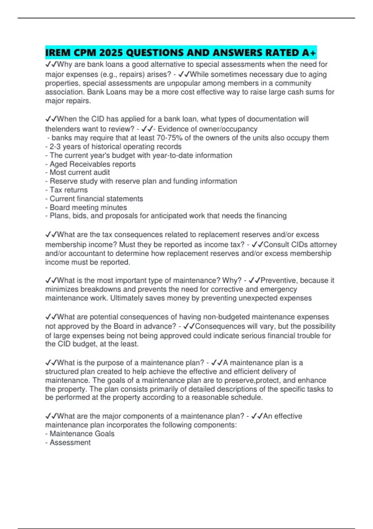 ✔✔What are the major components of a maintenance plan? - ✔✔An effective