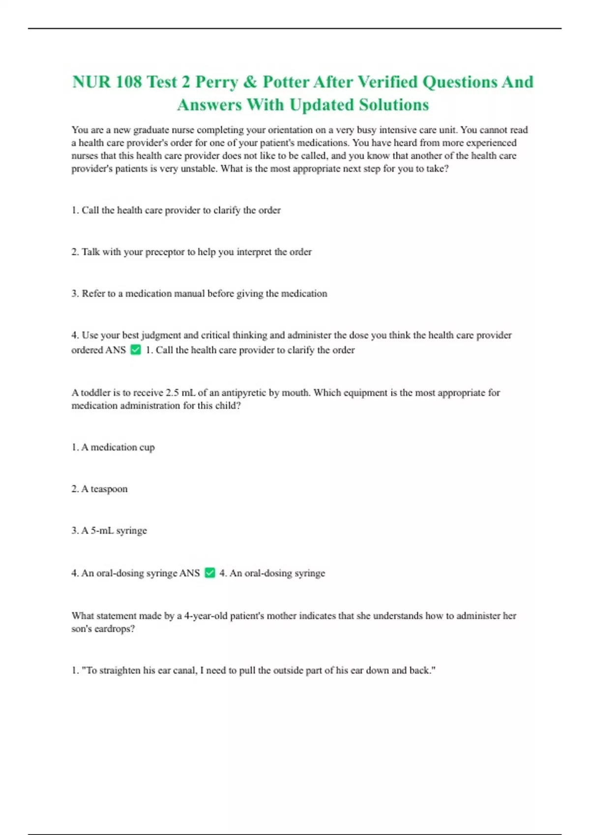 least 10 minutes." ANS 2. "I need to straighten his ear canal before administering the medication by