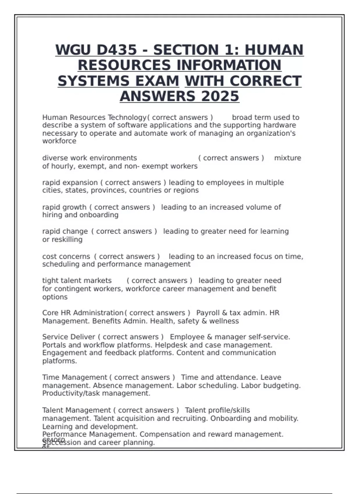 WGU D435 - SECTION 1: HUMAN RESOURCES INFORMATION SYSTEMS EXAM WITH CORRECT ANSWERS 2025