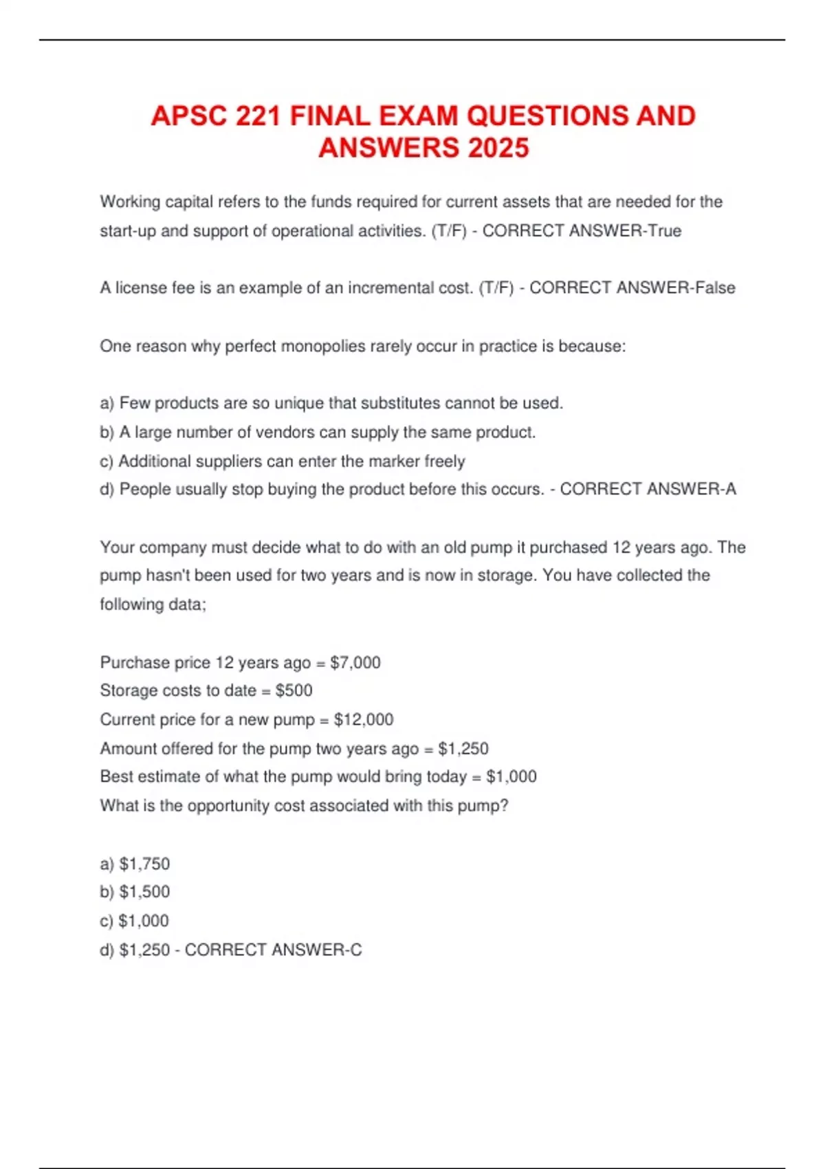 Your company must decide what to do with an old pump it purchased 12 years ago. The