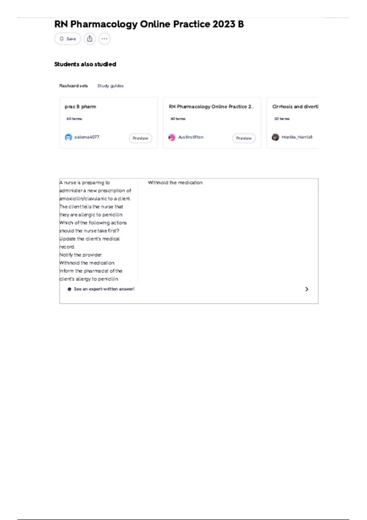 prac B pharm RN Pharmacology Online Practice 2... Cirrhosis and diverti