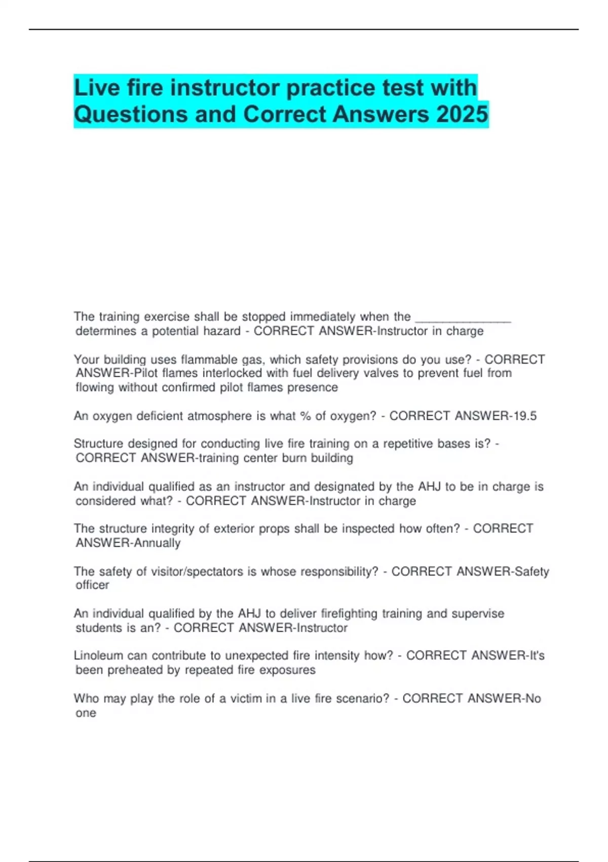 Live fire instructor practice test with Questions and Correct Answers 2025.