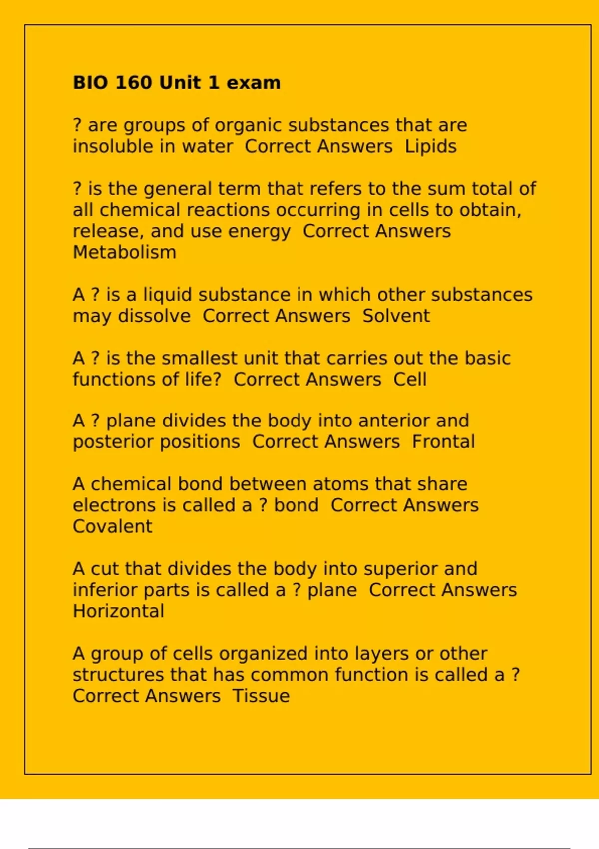 Exam of 9 pages for the course BIO 160 at BIO 160 (BIO 160 Unit 1 exam)