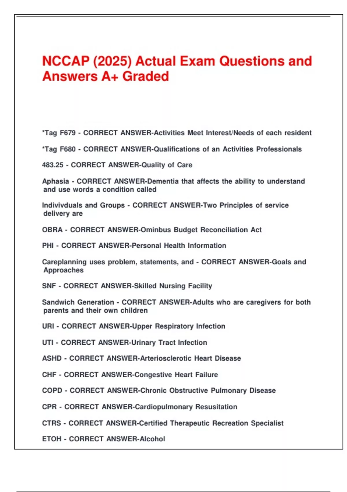 NCCAP (2025) Actual Exam Questions and