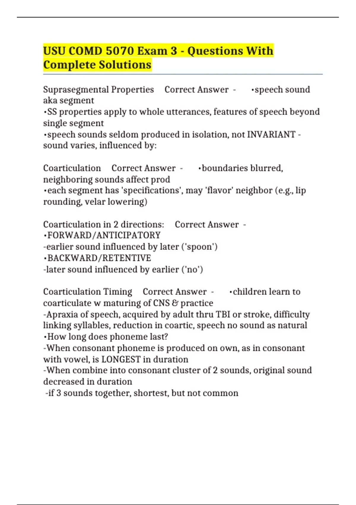 Suprasegmental Properties Correct Answer - •speech sound