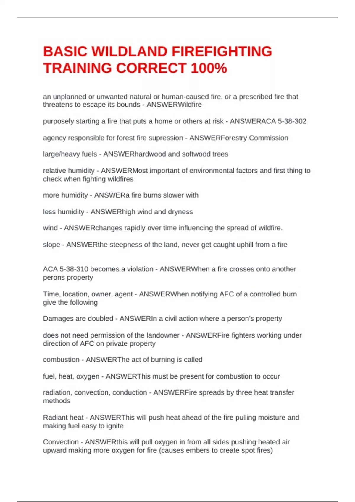 BASIC WILDLAND FIREFIGHTING TRAINING CORRECT 100%