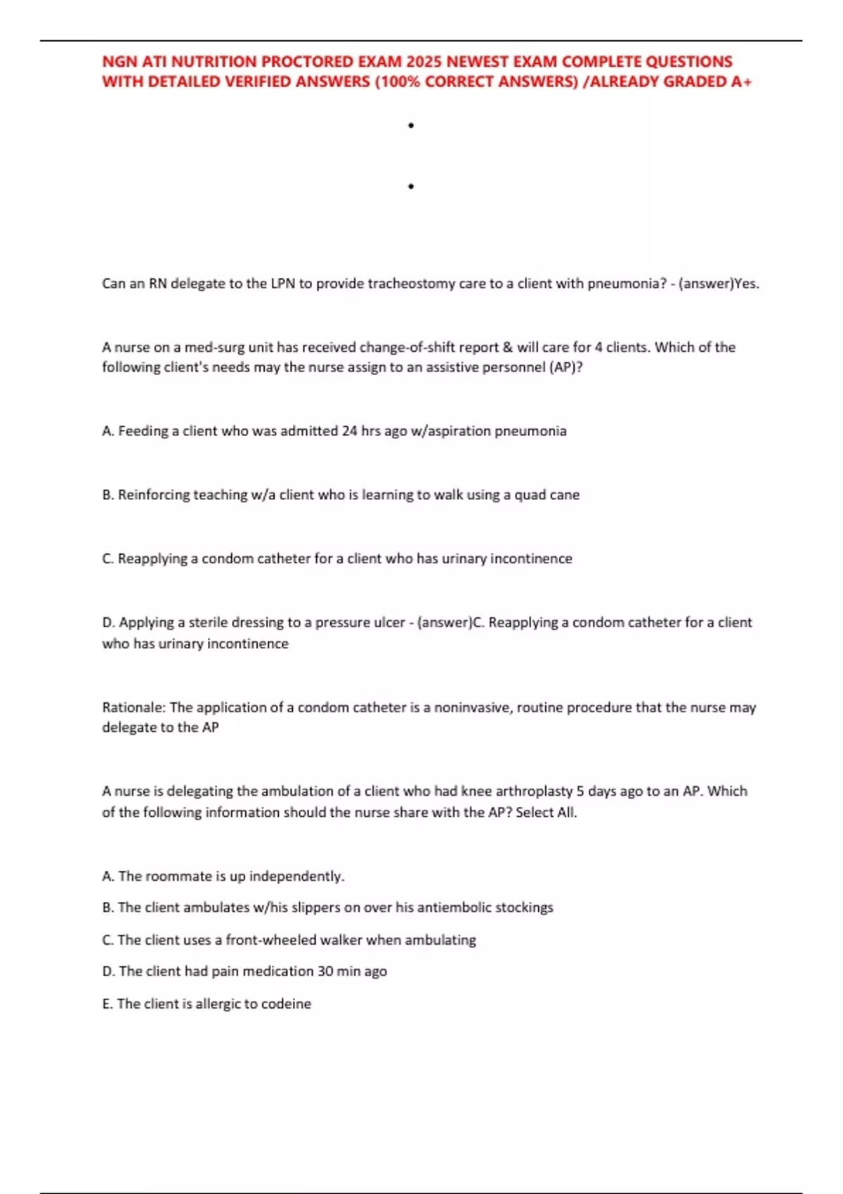 , NGN ATI NUTRITION PROCTORED EXAM 2025 NEWEST EXAM COMPLETE QUESTIONS