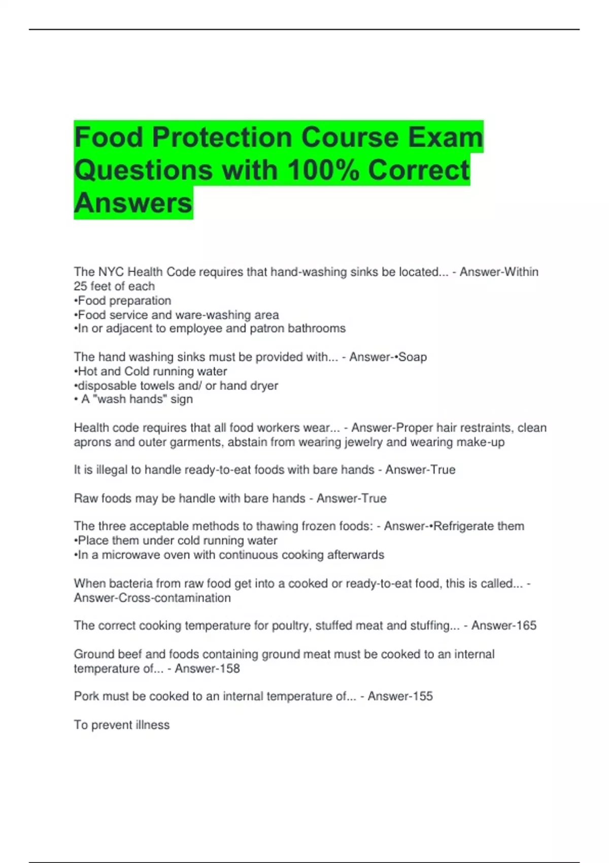 Pork must be cooked to an internal temperature of... - Answer-155