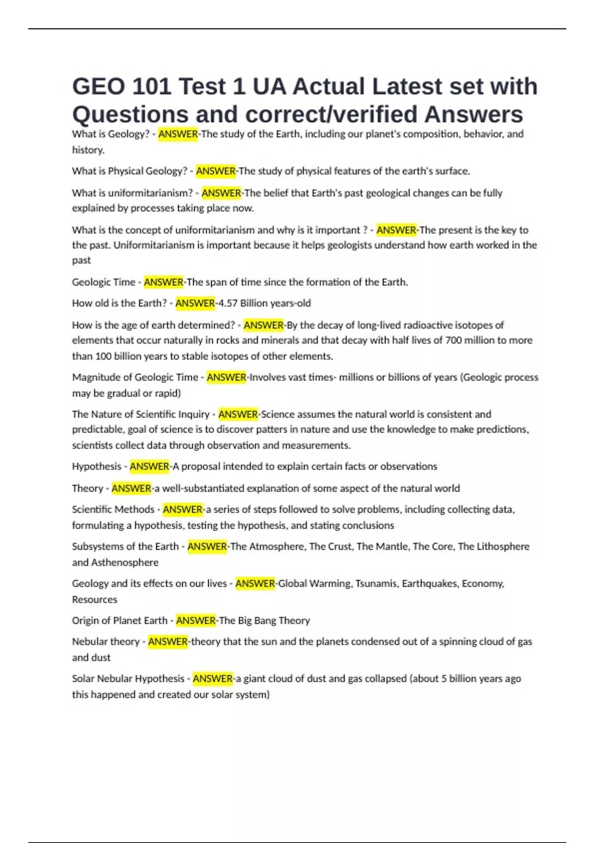 What is uniformitarianism? - ANSWER-The belief that Earth's past geological changes can be fully