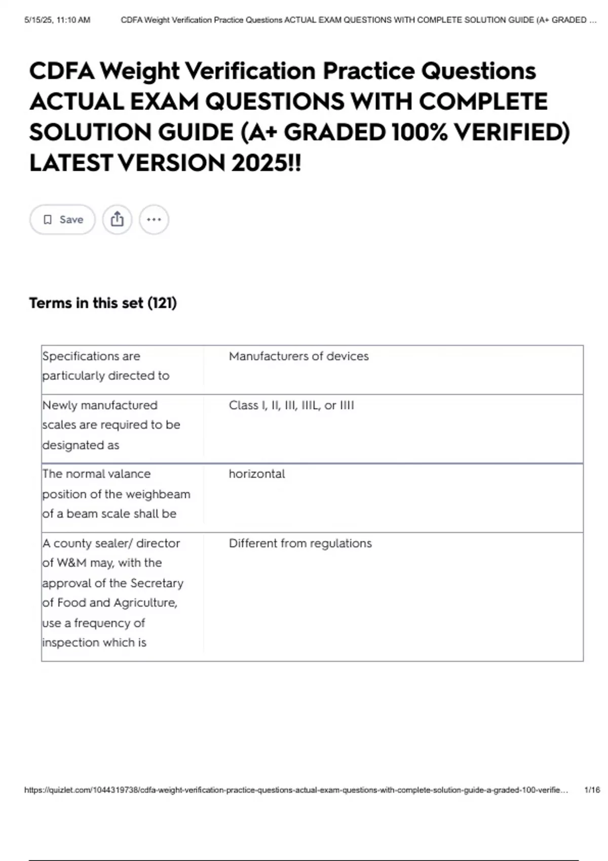 ,5/15/25, 11:10 AM CDFA Weight Verification Practice Questions ACTUAL EXAM QUESTIONS WITH COMPLETE SOLUTION GUIDE (A+ GRADED …