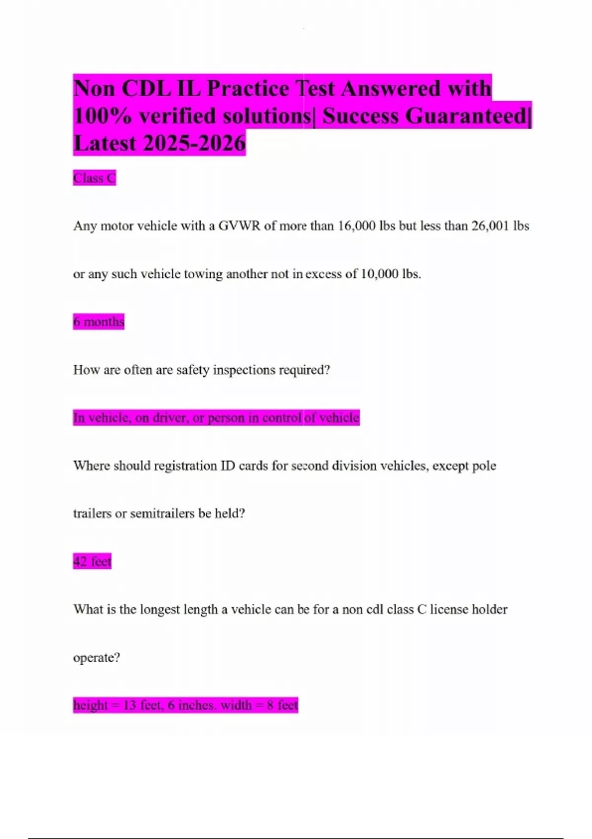 Non CDL IL Practice Test Answered with 100% verified solutions| Success Guaranteed| Latest