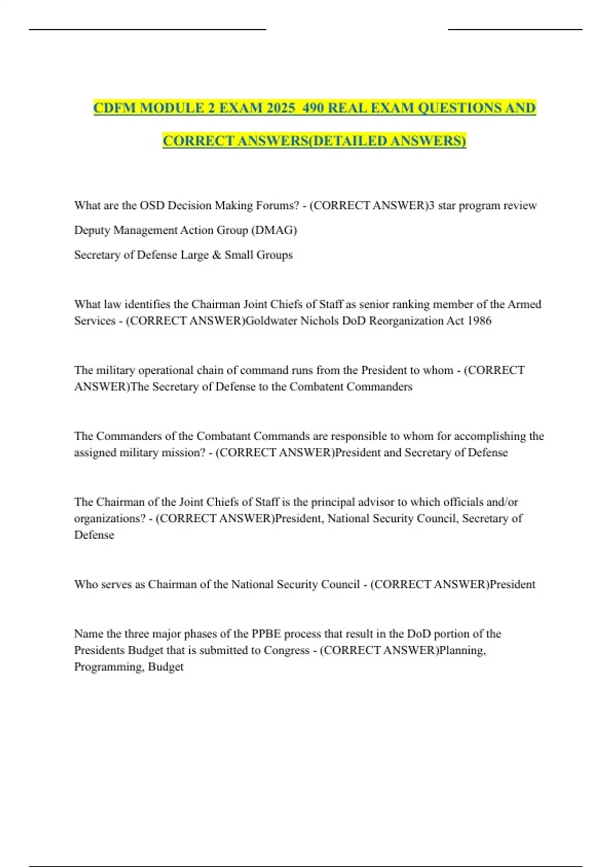 CDFM MODULE 2 EXAM 2025 490 REAL EXAM QUESTIONS AND