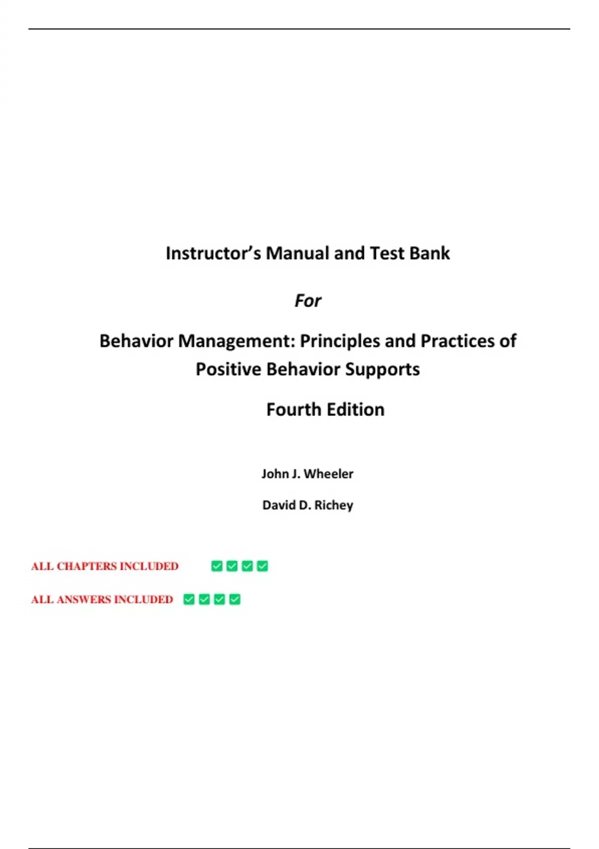 Behavior Management – 4th Edition | John J. Wheeler | Instructor’s Manual & Test Bank | Complete Course Resource for Positive Behavior Supports