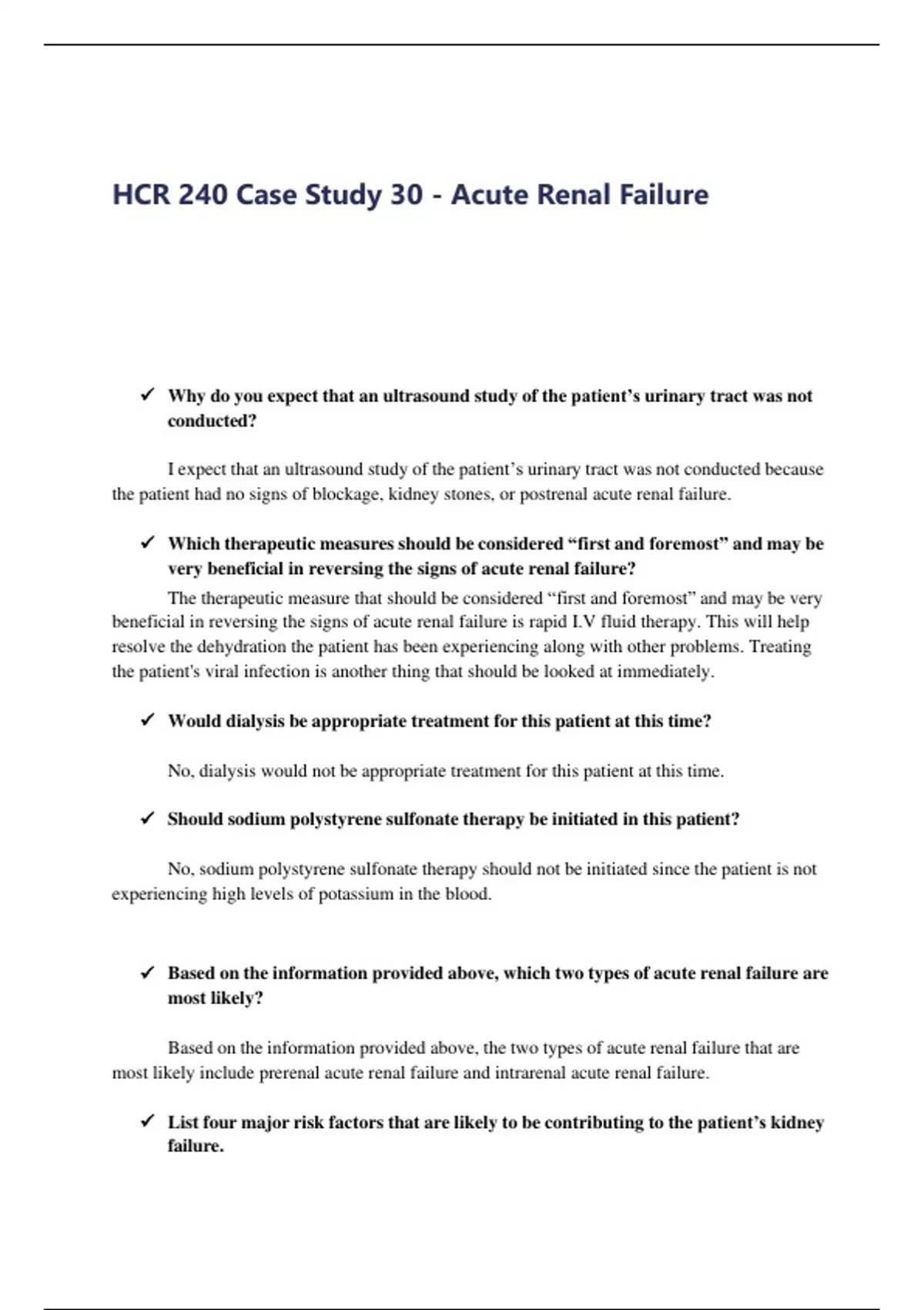 the patient had no signs of blockage, kidney stones, or postrenal acute renal failure.