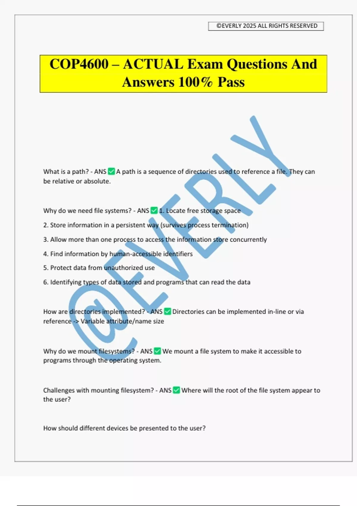COP4600 – ACTUAL Exam Questions And