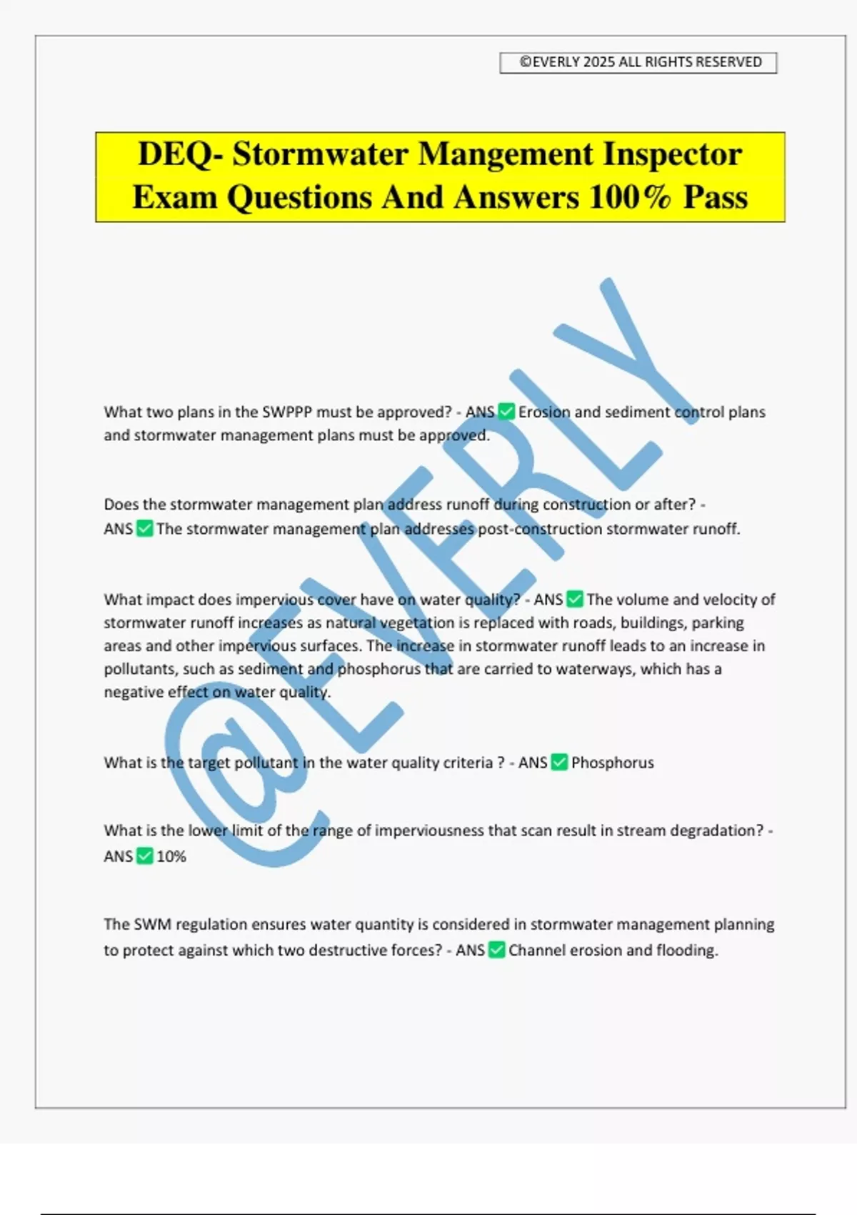 DEQ- Stormwater Mangement Inspector Exam Questions And Answers 100% Pass