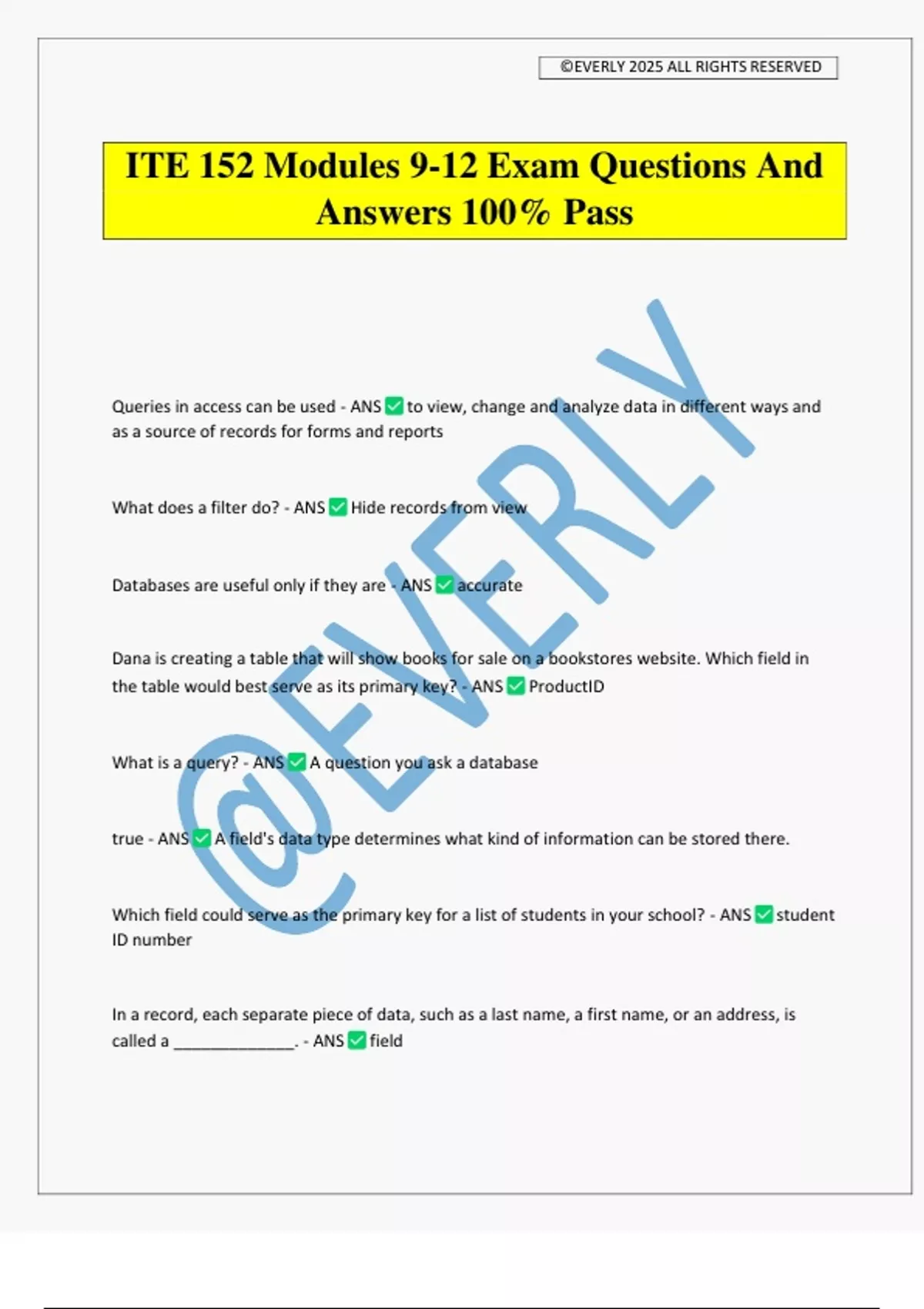 ITE 152 Modules 9-12 Exam Questions And