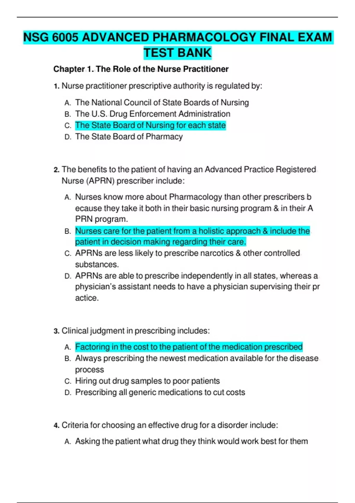 NSG 6005 ADVANCED PHARMACOLOGY FINAL EXAM TEST BANK NSG 6005 ADVANCED PHARMACOLOGY FINAL EXAM TEST BANK NSG 6005 ADVANCED PHARMACOLOGY FINAL EXAM TEST BANK