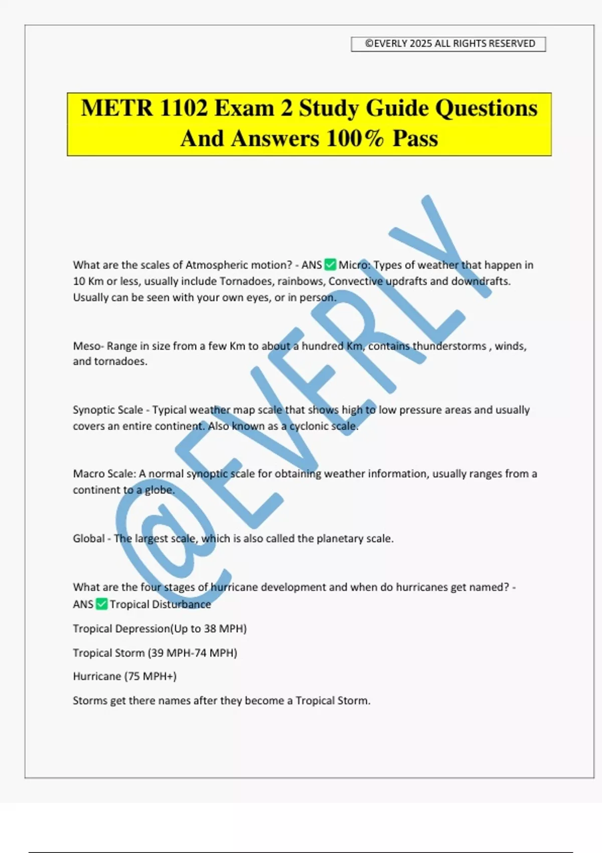 METR 1102 Exam 2 Study Guide Questions And Answers 100% Pass