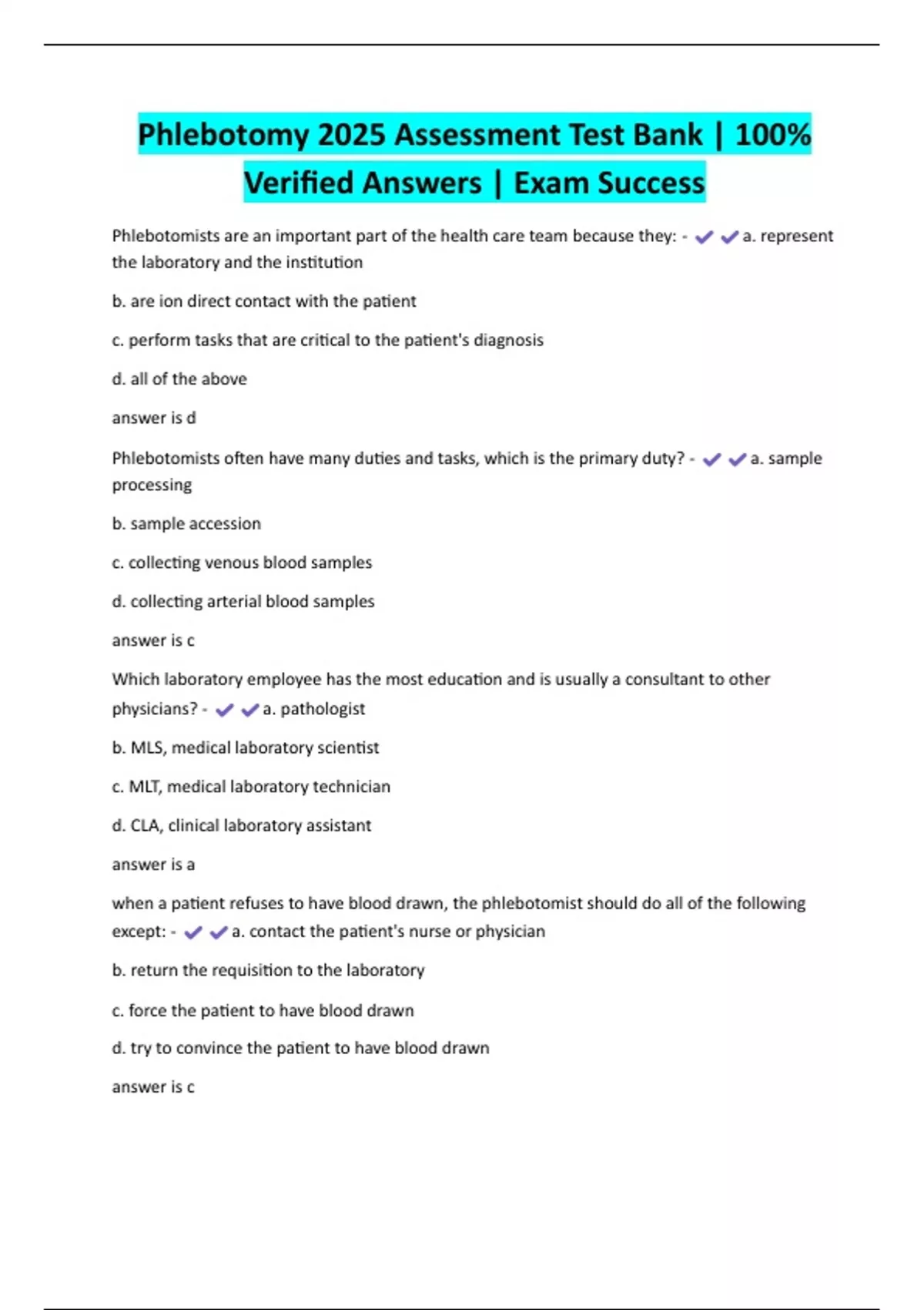 Phlebotomists often have many duties and tasks, which is the primary duty? - a. sample