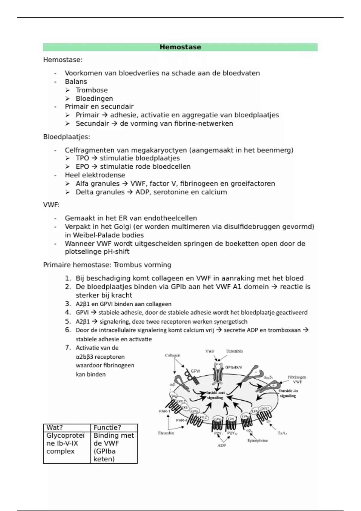1. Bij beschadiging komt collageen en VWF in aanraking met het bloed