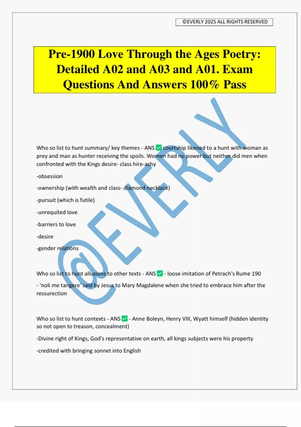 Who so list to hunt contexts - ANS - Anne Boleyn, Henry VIII, Wyatt himself (hidden identity