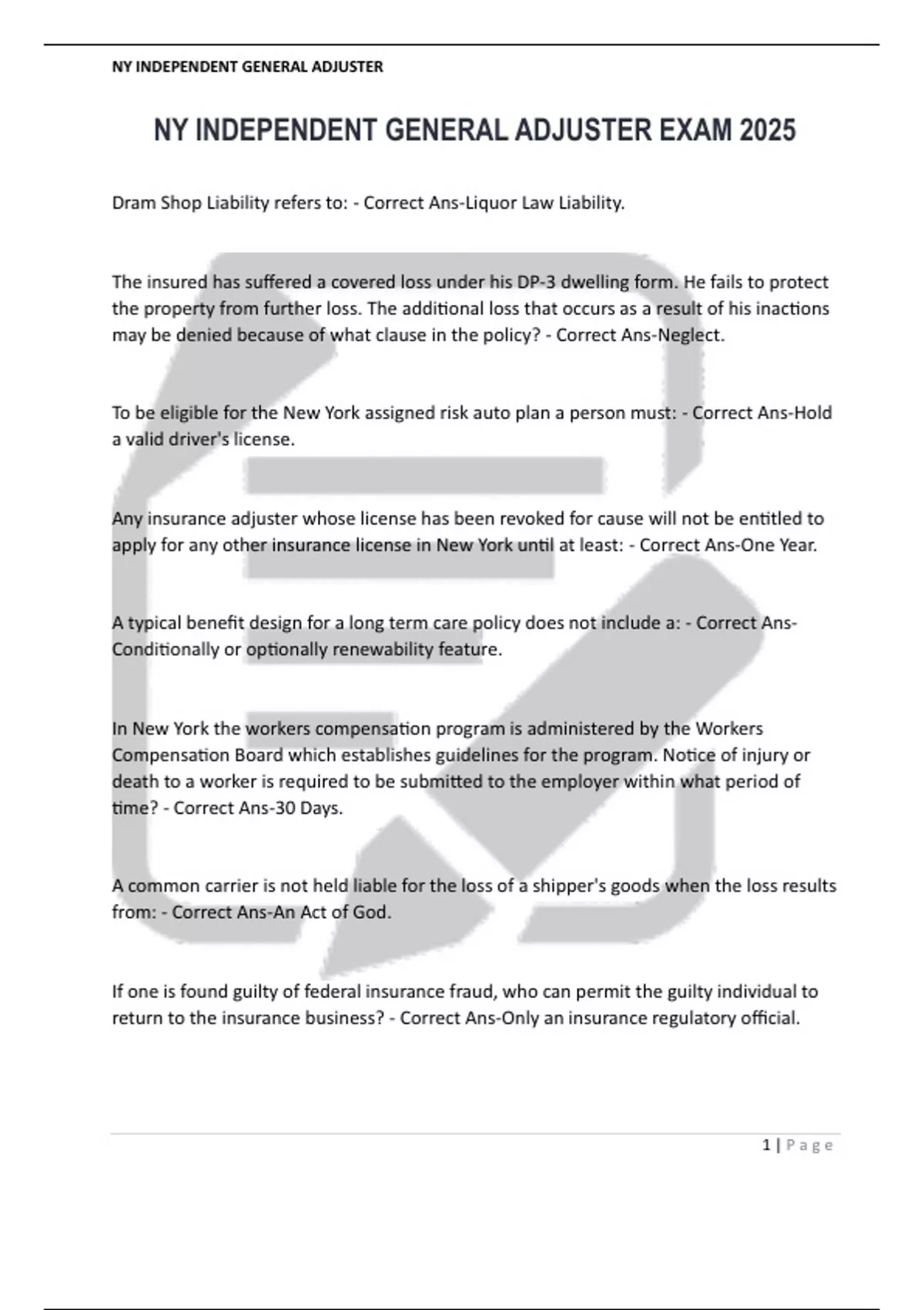 NY INDEPENDENT GENERAL ADJUSTER EXAM 2025