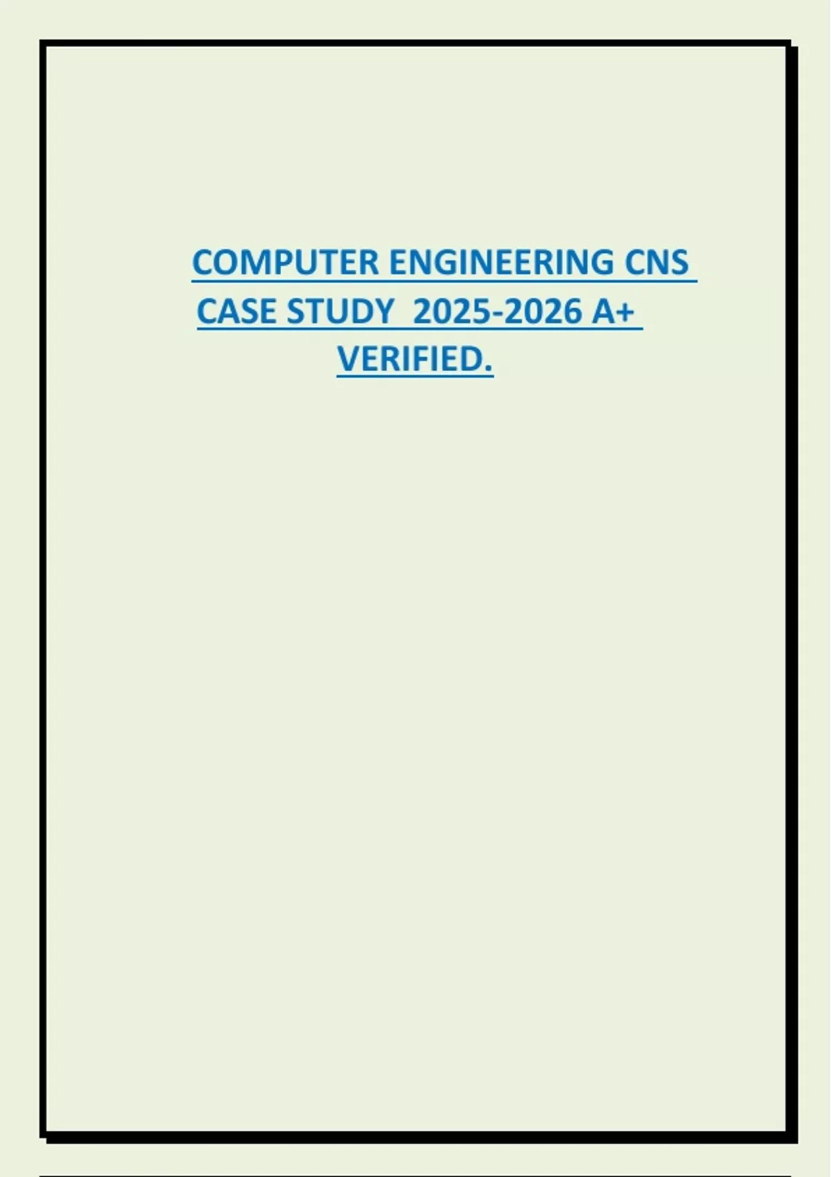 This document provides a fully solved and A+ verified case study for the Computer Engineering CNS (Computer Network Systems) course, tailored for the 2025–2026 academic year. It includes real-world application, system analysis, network configuration, troubleshooting, and security protocol implementation. Ideal for students aiming to strengthen their practical understanding of computer networking concepts.