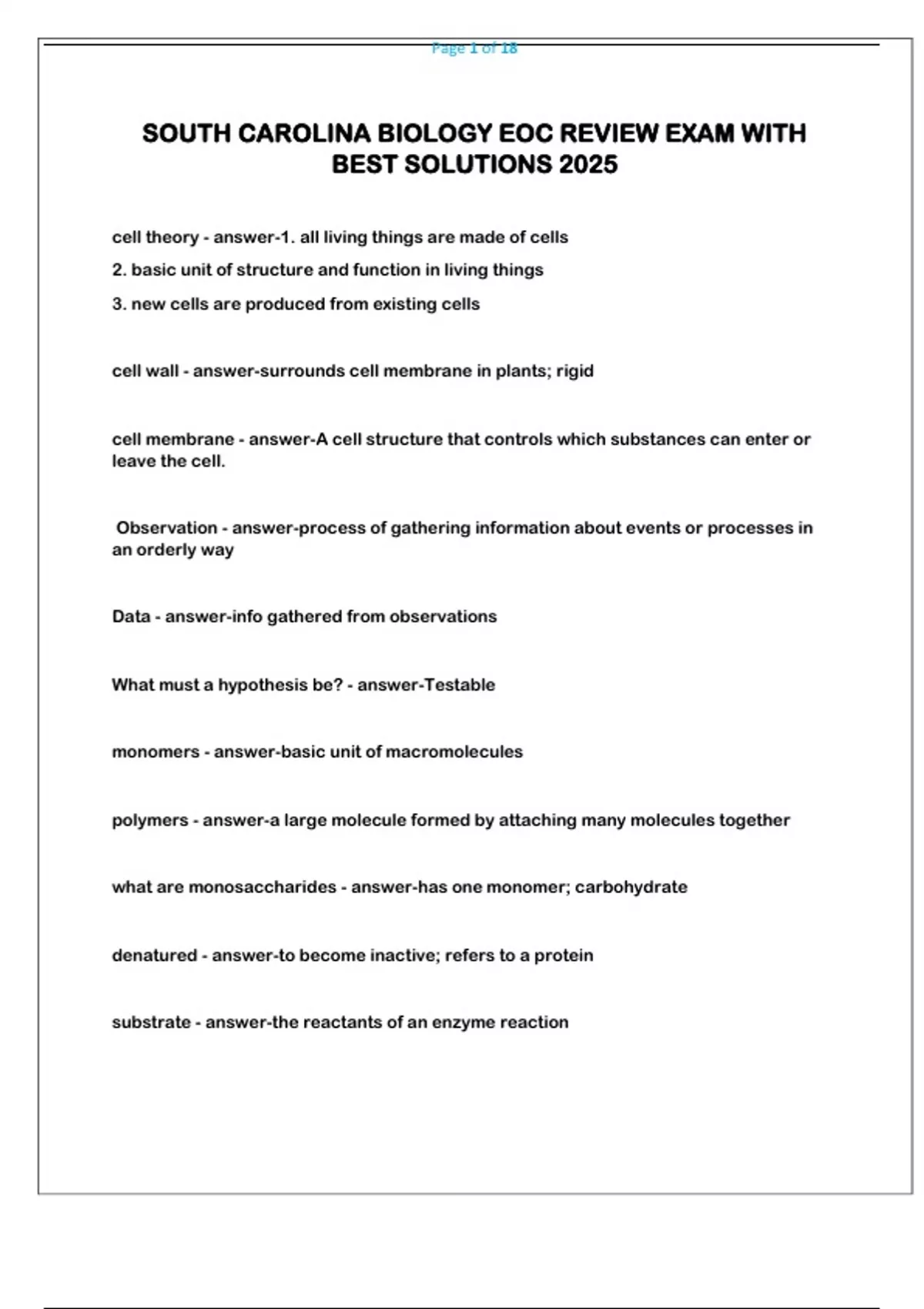 SOUTH CAROLINA BIOLOGY EOC REVIEW EXAM WITH