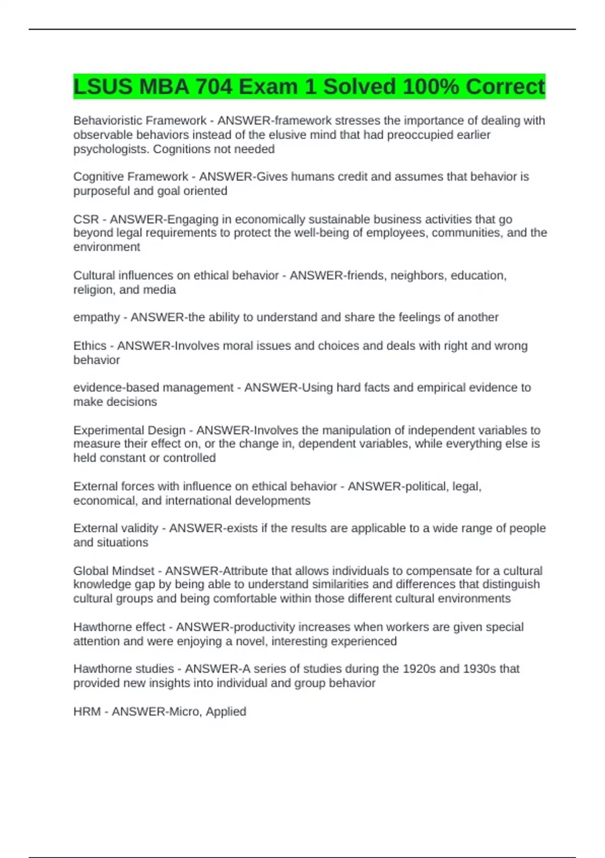 LSUS MBA 704 Exam 1 Solved 100% Correct