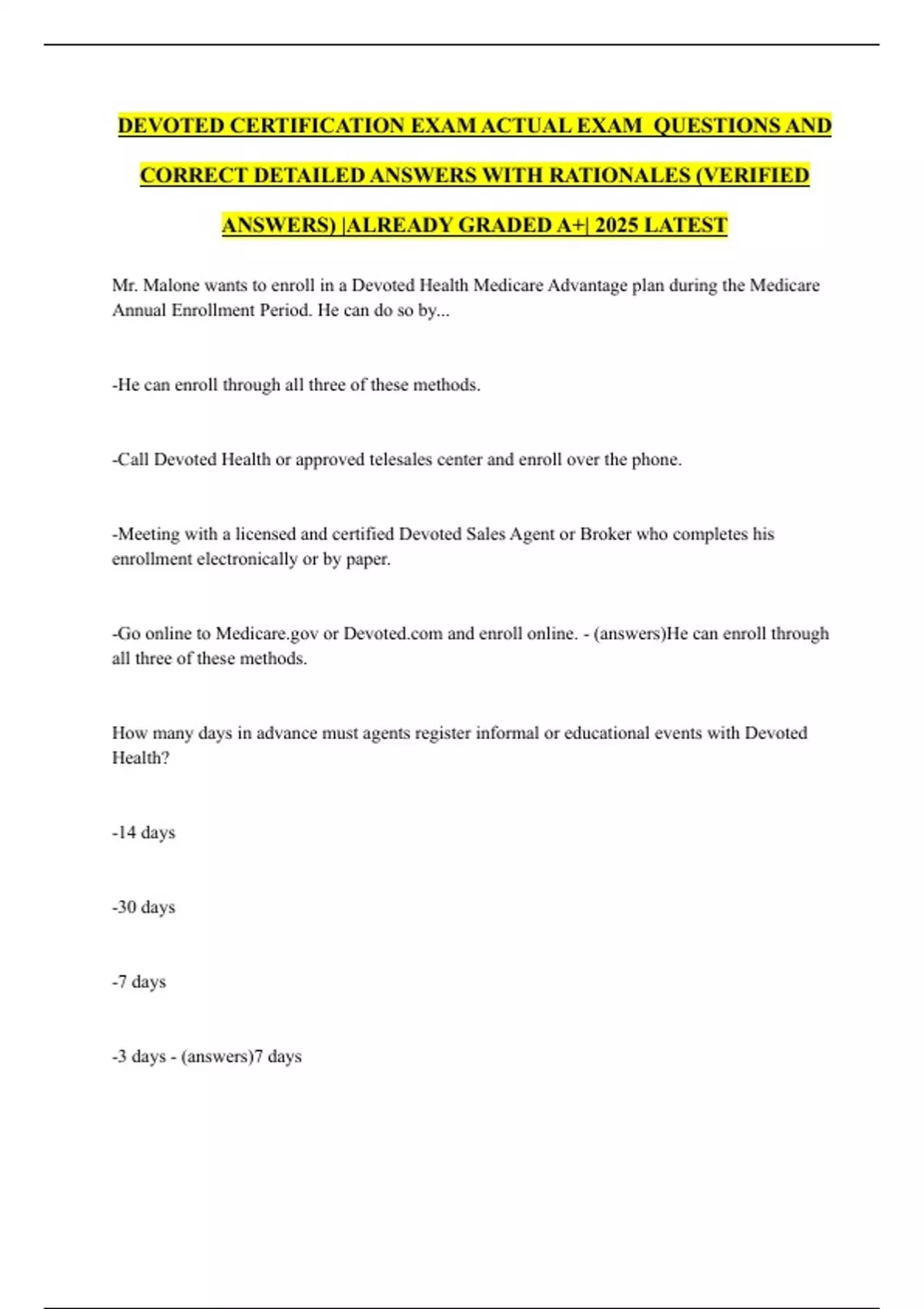 DEVOTED CERTIFICATION EXAM ACTUAL EXAM QUESTIONS AND CORRECT DETAILED ANSWERS WITH RATIONALES (VERIFIED ANSWERS) |ALREADY GRADED A+| 2025 LATEST