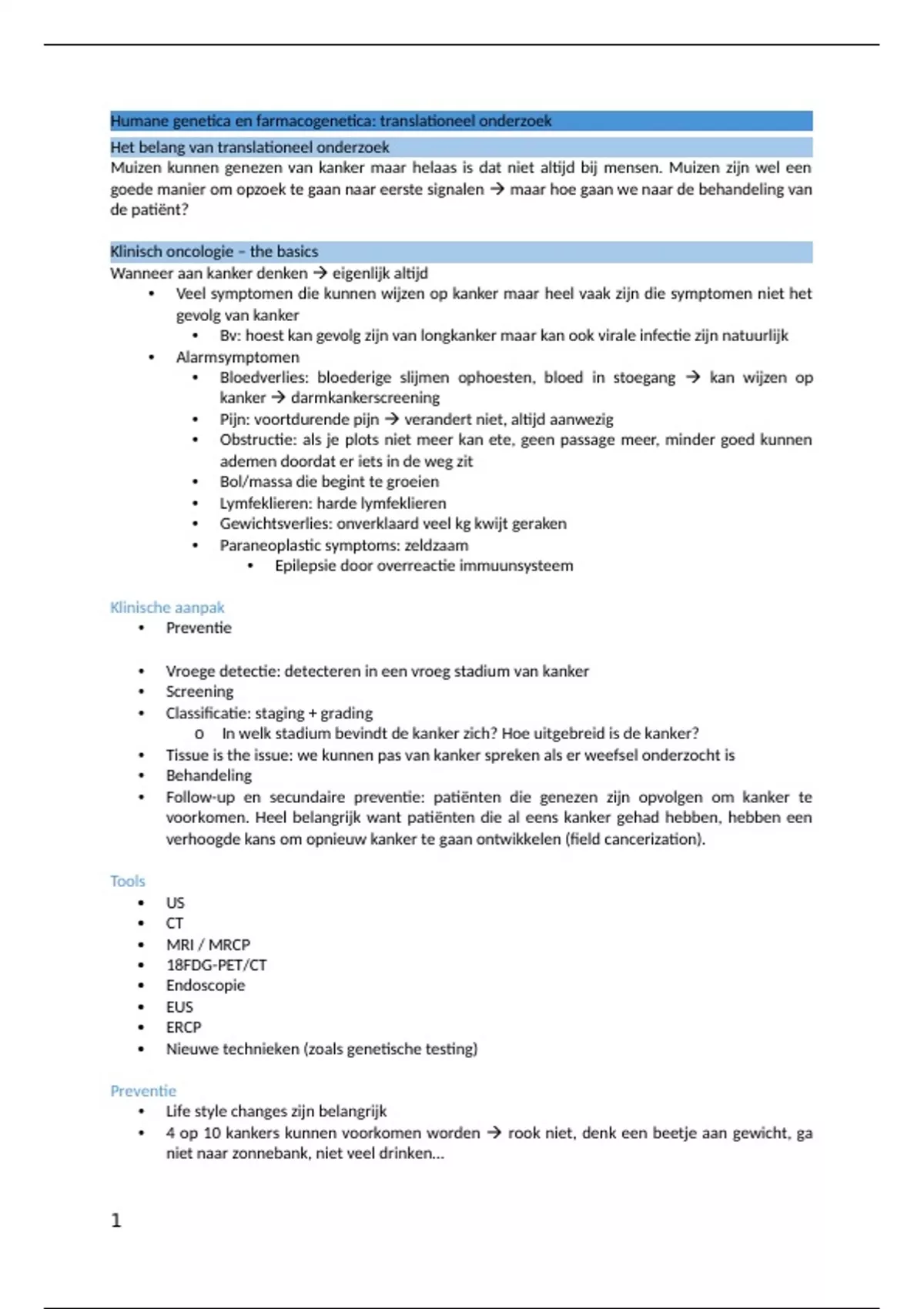 • Follow-up en secundaire preventie: patiënten die genezen zijn opvolgen om kanker te
