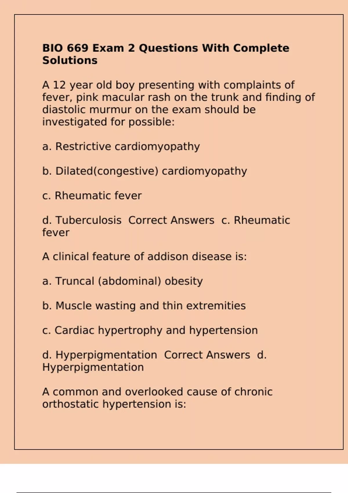 Correct Answers D. Autonomic neuropathy in