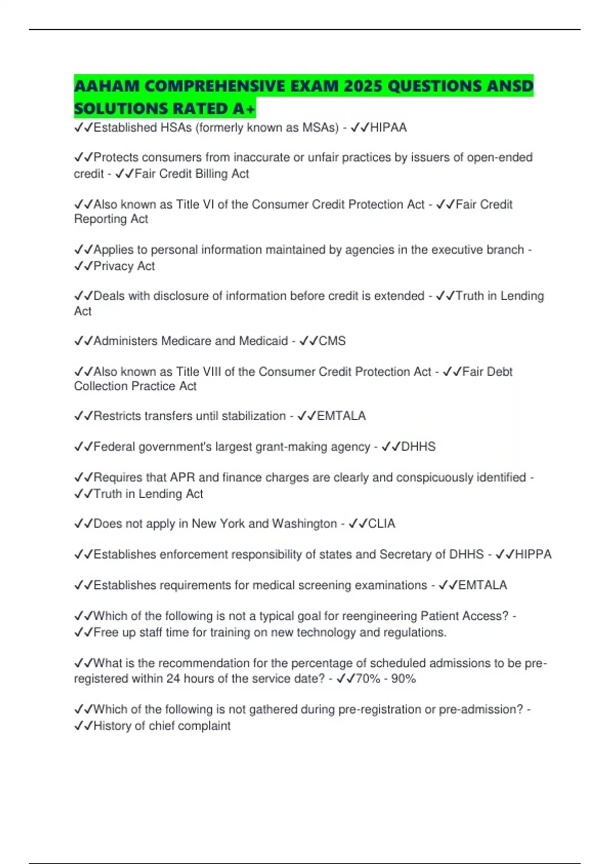 AAHAM COMPREHENSIVE EXAM 2025 QUESTIONS ANSD SOLUTIONS RATED A+