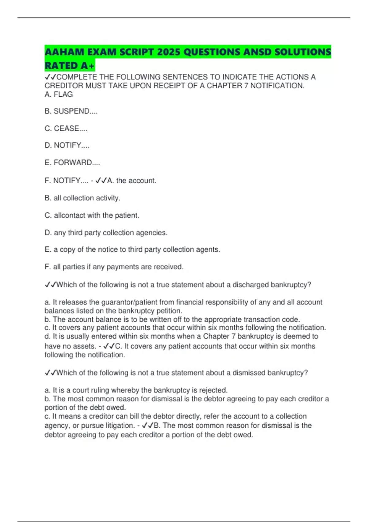 AAHAM EXAM SCRIPT 2025 QUESTIONS ANSD SOLUTIONS RATED A+