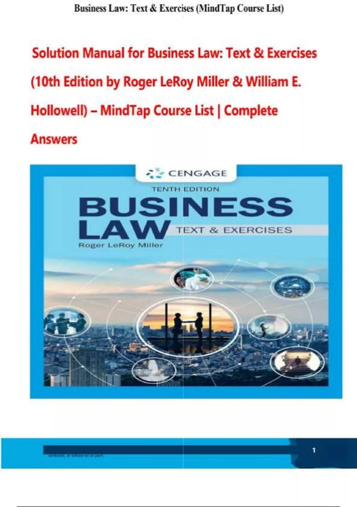 Solution Manual for Business Law: Text & Exercises (10th Edition by Roger LeRoy Miller & William E. Hollowell) – Complete | ISBN: 9780357717417 Solution Manual for Business Law: Text & Exercises (10th Edition by Roger LeRoy Miller & William E. Hollowell) – Complete | ISBN: 9780357717417