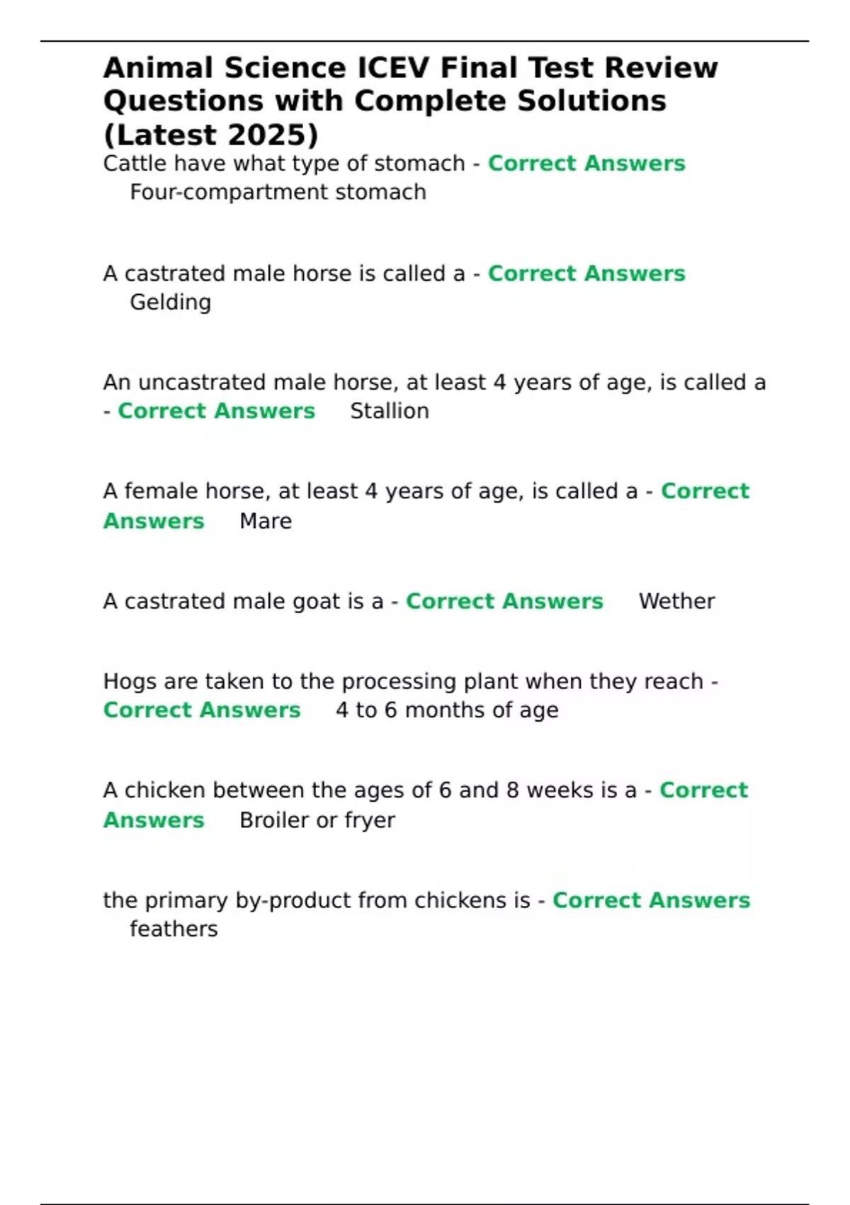 - Correct Answers ✅ruminant