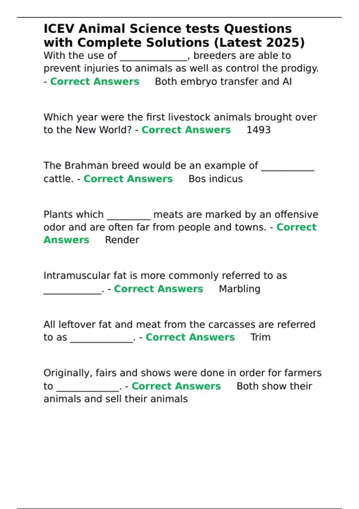 ICEV Animal Science tests Questions with Complte Solutions (Latest 2025)