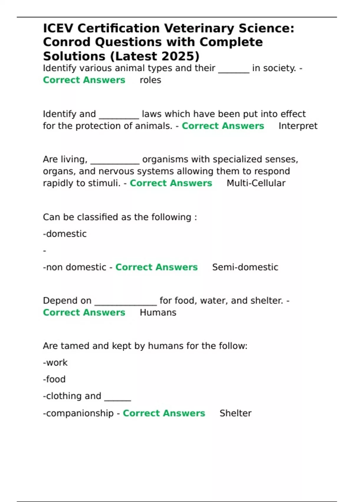 ICEV Certification Veterinary Science Conrod Questions with Complete Solutions (Latest 2025)