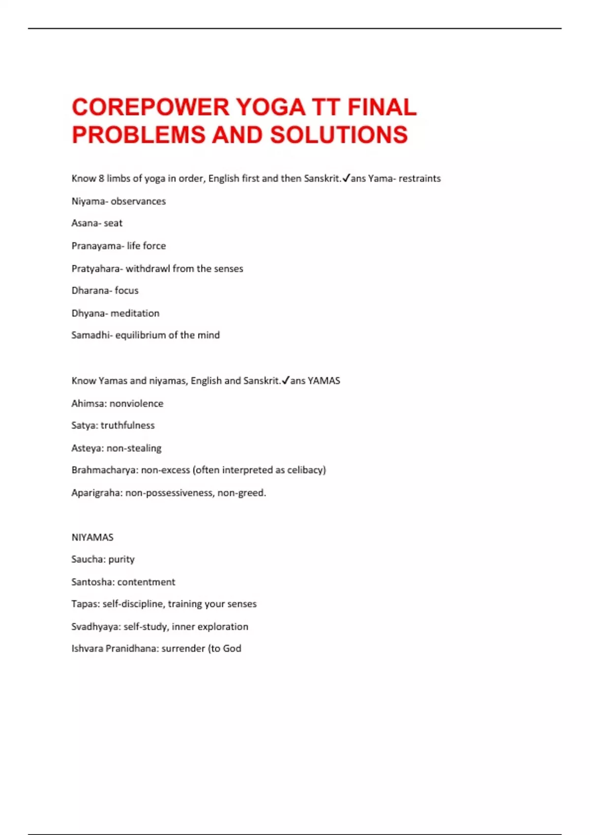 Know 8 limbs of yoga in order, English first and then Sanskrit.✔ans Yama- restraints