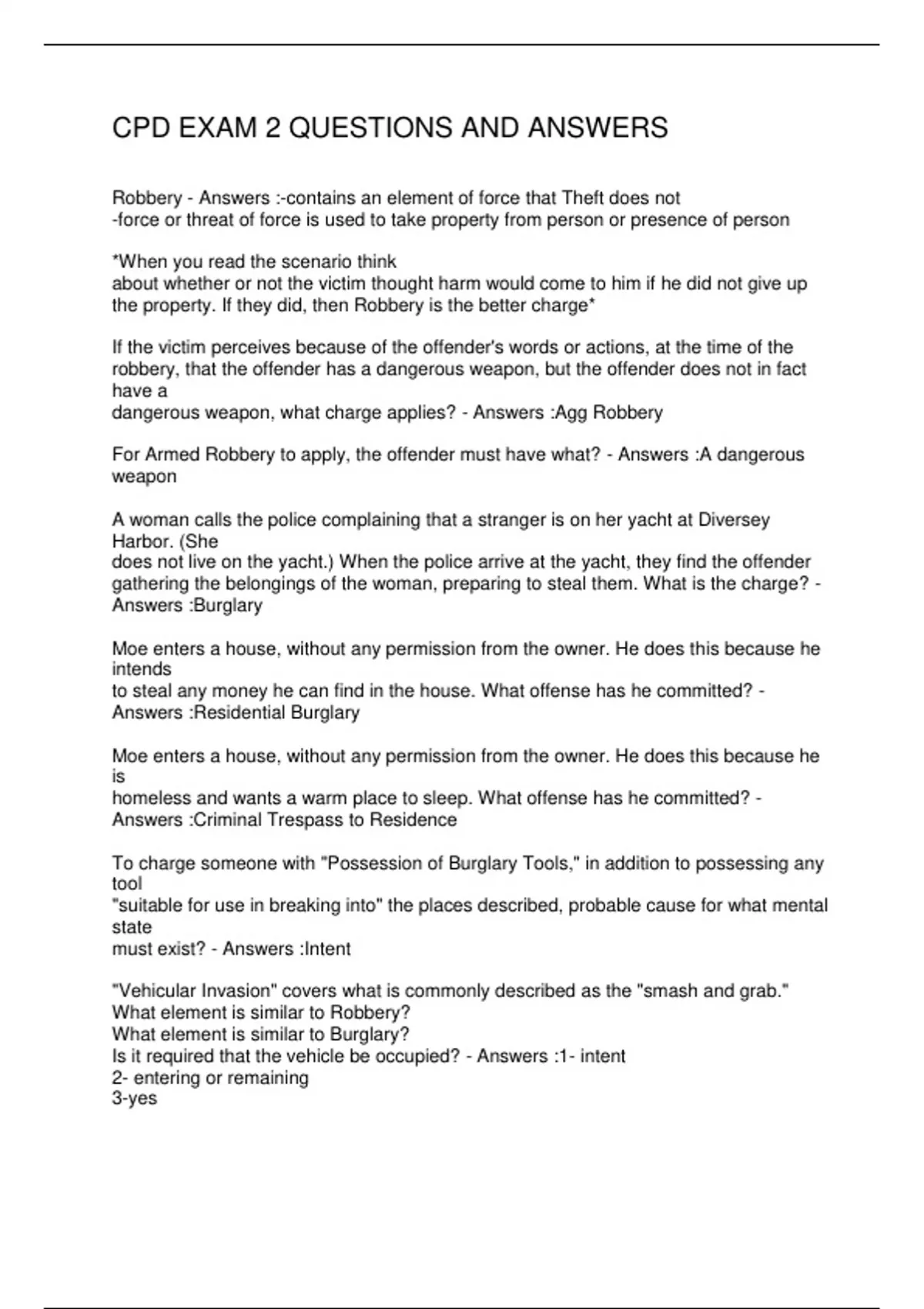 CPD EXAM 2 QUESTIONS AND ANSWERS
