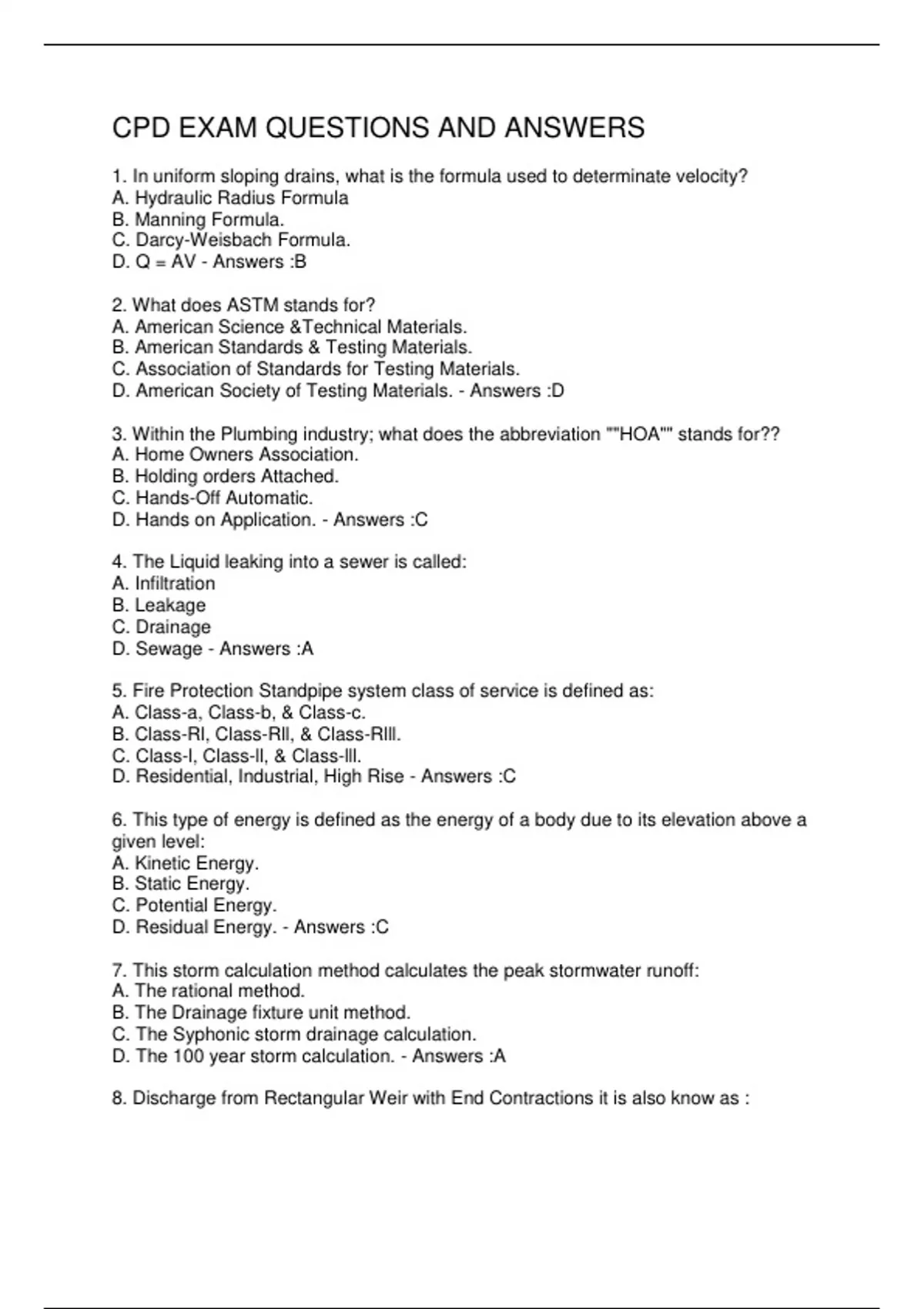 CPD EXAM QUESTIONS AND ANSWERS